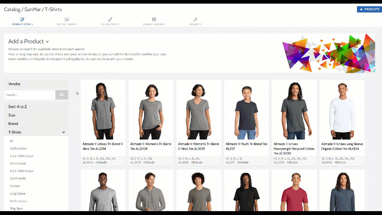 With thousands of style, size, and color options, Spirit Sale™ makes it easy by integrating popular apparel catalogs from three industry-leading suppliers: SanMar, S&S, and AlphaBroder. Save hours of setup time by quickly populating from the available catalogs.